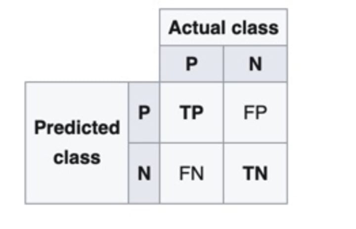 Confusion Matrix: https://en.wikipedia.org/wiki/Confusion_matrix