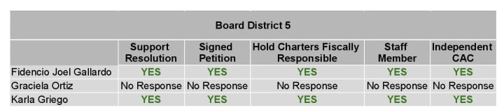 - Question 1: If you were on the Board, would you sponsor and work for the passage of the proposed "Improving Special Education Within the LAUSD" resolution? YES