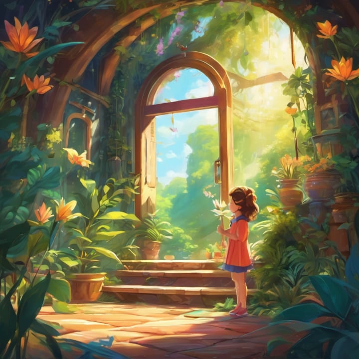 One beautiful sunny morning, Lily woke up feeling especially creative. She decided it was time to create a new adventure. So with a sprinkle of glitter and a wave of her magic wand, she transformed her little room into a secret portal leading to the most extraordinary world. Through the portal, Lily found herself in a lush rainforest, full of exotic plants, vibrant animals, and enchanting sounds. She giggled with joy as she skipped through the dense vegetation, humming a tune only she could hear.