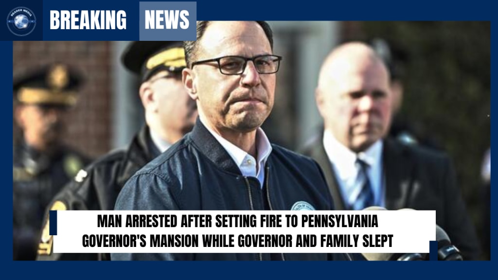 Man sets fire to Governor Shapiro’s mansion while family sleeps; arrested and charged with terrorism.