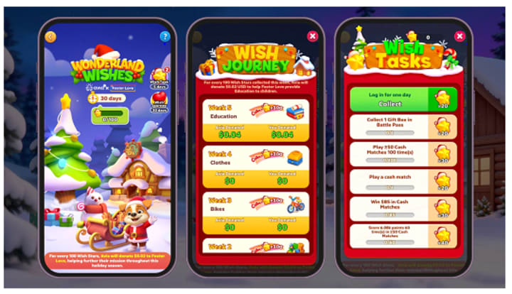 By interacting with "Kid Wish Letters" and earning "Wish Stars" through gameplay, the community triggered donations from the developers. In this model, 100 "Wish Stars" translated into a tangible donation to Foster Love.