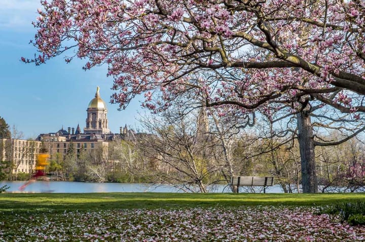 While everyone knows the University of Notre Dame for their famous football team, the school is also one of the most beautiful campuses in America. The golden dome on the campus' main building may be the most notable feature of the campus, but there are plenty of other sites on the campus to behold.