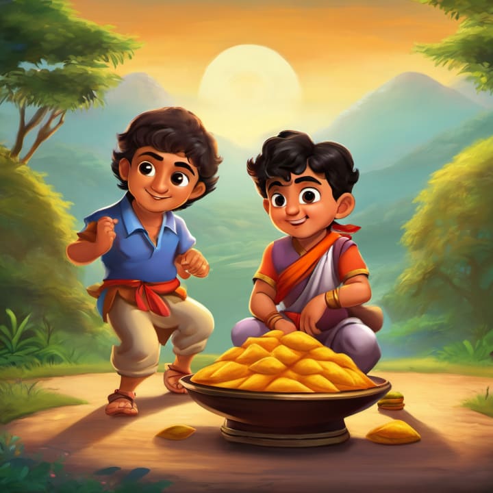 Motu," Patlu said, "I have an idea. Let's set a trap for the thieves using your love for samosas. We'll make a trail of samosas leading to where they are hiding. As soon as they start following the trail, we'll catch them red-handed." Motu's eyes widened with excitement. He loved samosas so much that he couldn't resist the temptation. They immediately went to the nearest samosa shop and got a dozen samosas.