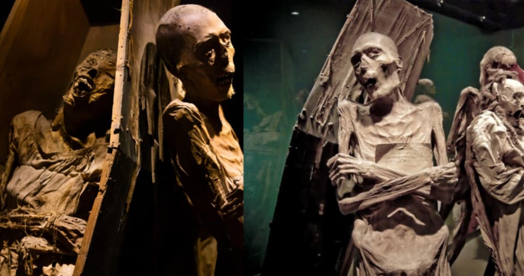 The majority of the mummies still retain their hair, skin, and even the clothing in which they were interred.