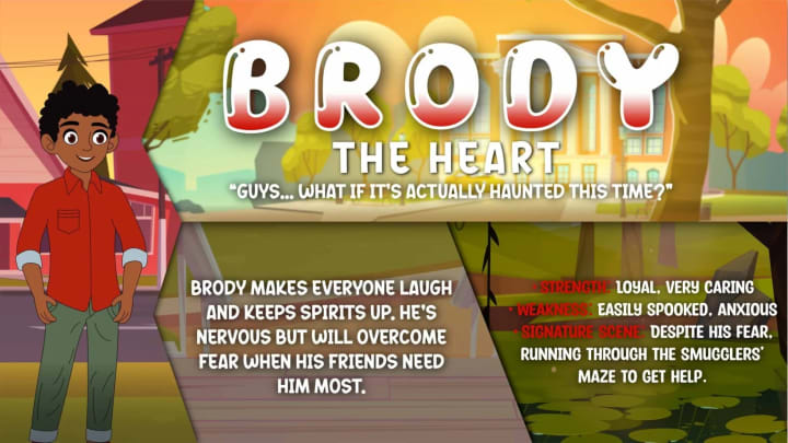 Brody makes everyone laugh and keeps spirits up. He’s nervous but will overcome fear when his friends need him most.