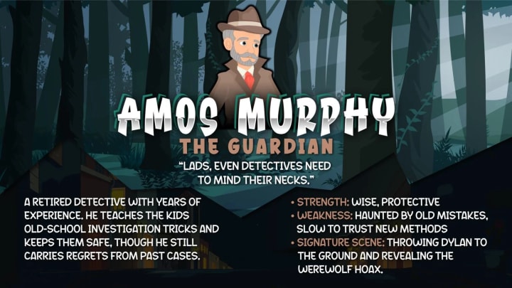 A retired detective with years of experience. He teaches the kids old-school investigation tricks and keeps them safe, though he still carries regrets from past cases.