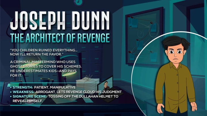 A criminal mastermind who uses ghost stories to cover his schemes. He underestimates kids—and pays for it.