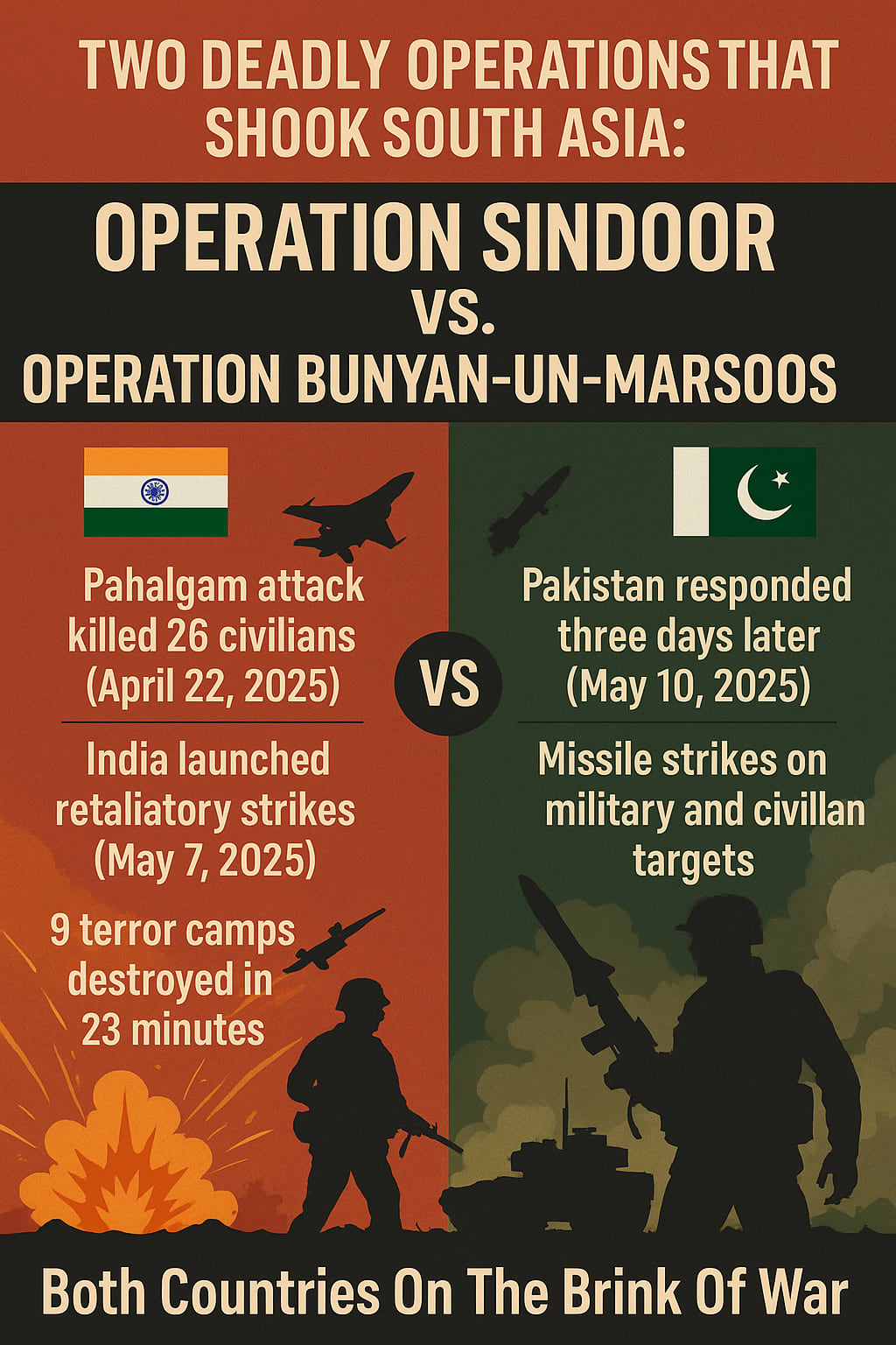 In a region where history repeats itself in cycles of violence and revenge, Operation Sindoor and Operation Bunyan-un-Marsoos remind us how swiftly peace can be shattered, and how crucial it is for powerful nations to choose dialogue over destruction.