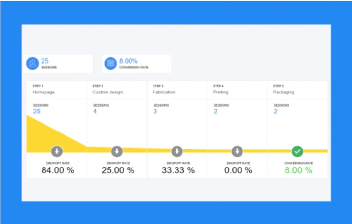These dashboards also give you insights into the percentage of drop-off at each stage of conversion.