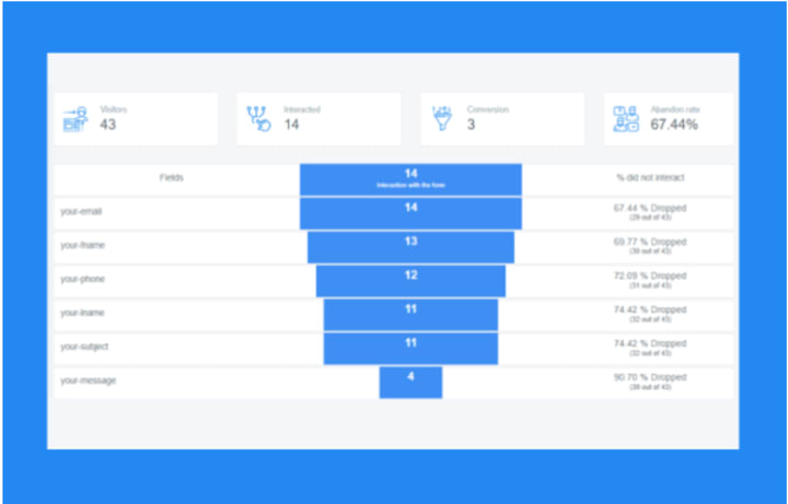 Apart from funnel analytics, some advanced website heatmap tools also give you form analysis.