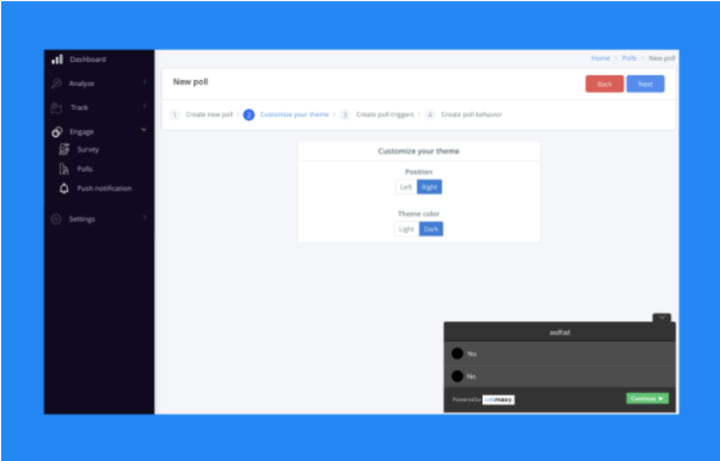 They also help you track the user behavior on these surveys and polls, to help you optimize them for better user engagement. (This could be in terms of design, location, content, length, etc.)