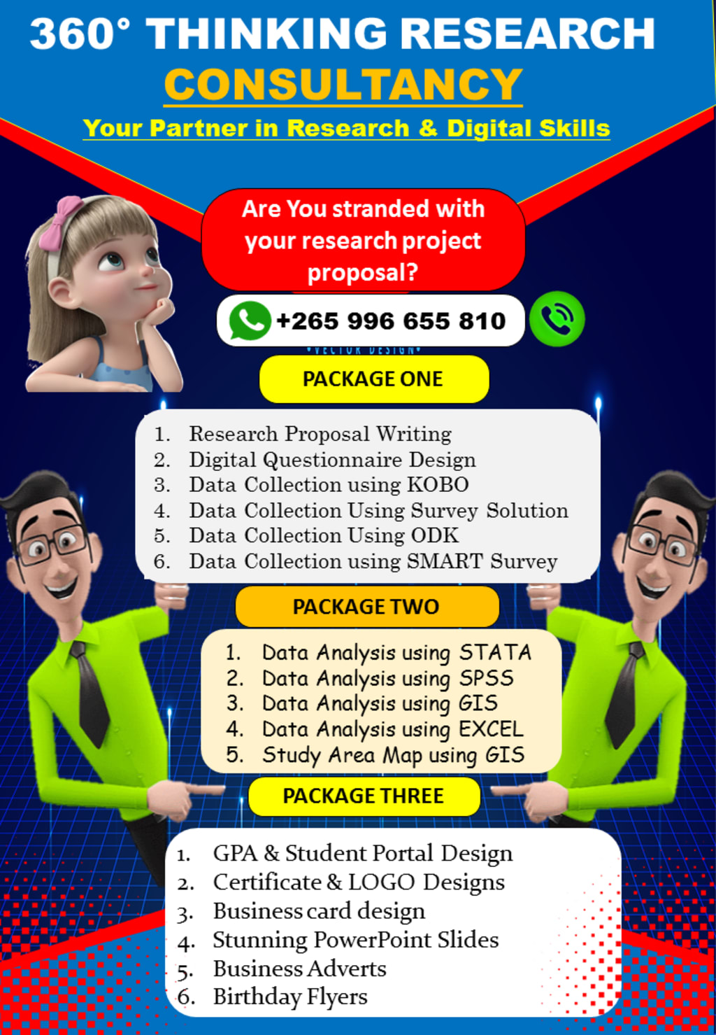 Meet Lawrence Luke, Founder and CEO of 360 Thinking Consultancy, an expert in Research and decision making. He helps organizations and individuals make better decisions through research and analysis. Follow him on WhatsApp +265996655810.