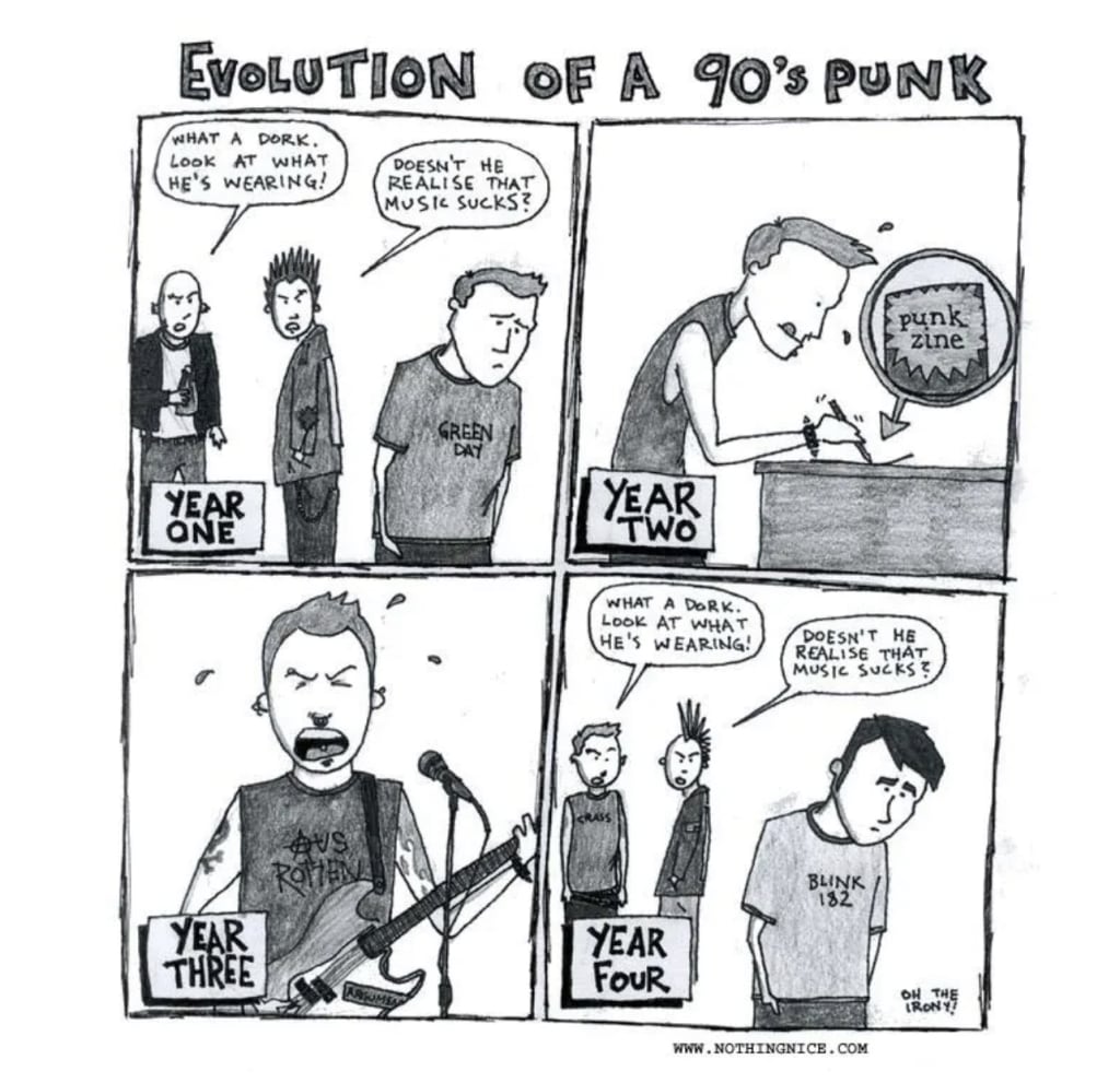 My daughter is familiar with this pop-punk band by the song, “Immortals,” from the movie Big Hero 6 that came out in 2014. Two years before the lead singer of Green Day, Billie Jo Armstrong, called for the death of the term pop-punk. In a 2016 tweet, his mission was to destroy the phrase. “When you’re punk, you just want to be punk. You don’t want to be that in between.” This response sums up Armstrong’s tweet said by a non-millennial in the YouTube video “DO TEENS KNOW 2000s POP-PUNK MUSIC?” Personally, listening to their take on this made me think critically about what makes this genre unique.