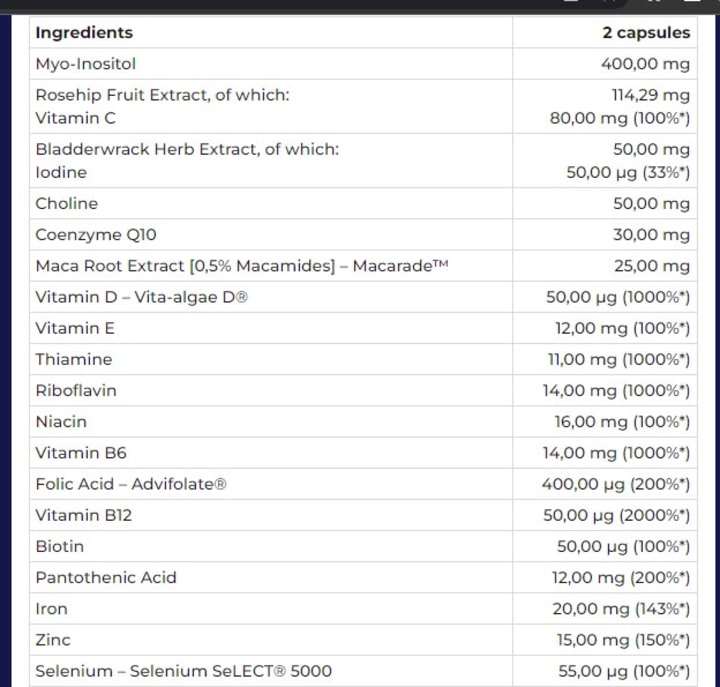 sometimes called vitamin B8, is the ingredient most commonly found as myoinositol in foods such as fresh fruits and vegetables, milk, and grain products. plays an extremely important role in the body due to its involvement in metabolic processes and signaling pathways. Inositol supplementation is particularly recommended for women with PCOS because it regulates the activity of LH and LSH hormones and increases tissue sensitivity to insulin.