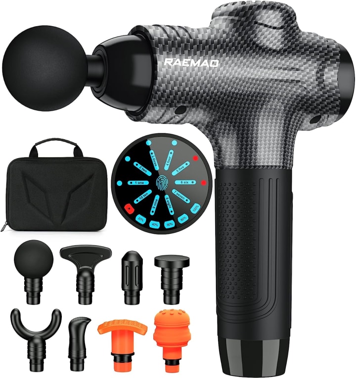 The RAEMAO Deep Tissue Massage Gun is a powerful and versatile tool designed to provide pain relief, promote blood circulation, and alleviate muscle soreness. With its impressive features and ergonomic design, it aims to cater to a wide range of users' needs.