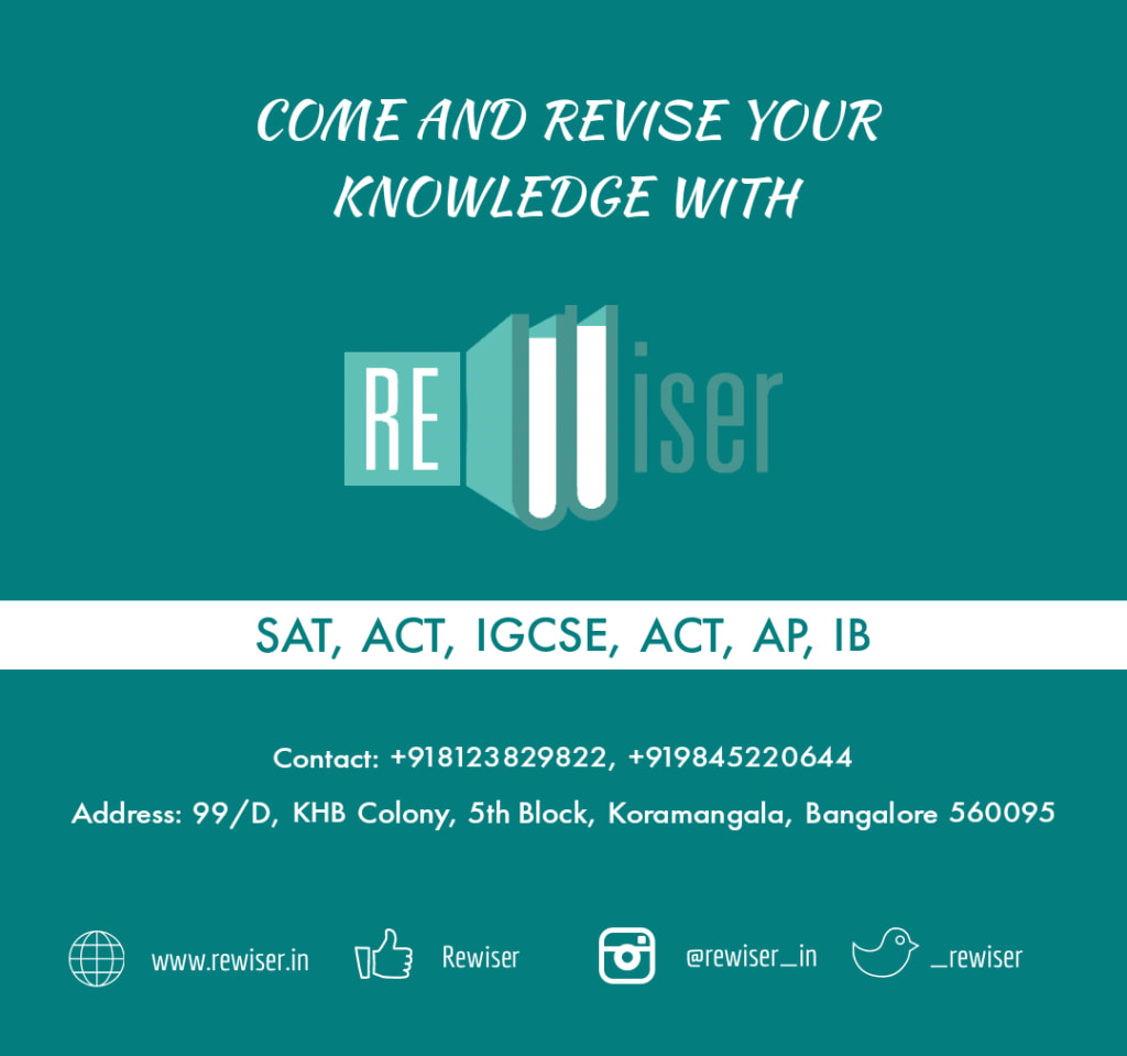 ReWiser offers multidisciplinary classroom preparation for tests such as SAT,ACT, IB, IGCSE and AP. We are highly rated company, training students for SAT, ACT, AP, IGCSE & IB Exams. We provide best SAT/ACT/IB/IGCSE/AP Classes in Bangalore.