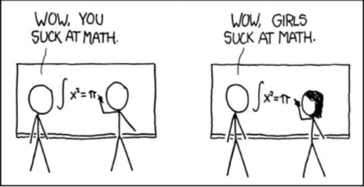 I remember working with two male students during a physics lab and all three of us were working on a problem that involved a lot of math. I finished first and because I was feeling confident in my answer, I told them I finished. One of them was very hesitant while looking at my answer and then proceeded to question and nitpick parts of my math. After spending ten minutes explaining my process and why it is right, he still didn't trust me and continued to work on his own. Five minutes later, the other male student said he finished and he ended up getting the same answer as me. The first guy stopped what he was doing, copied his work and answer, and flipped the page. He did not acknowledge that I was right in the first place and he did not question or hesitate to accept the other male student's answer. Why did he assume I was wrong? Why did he make me prove my work and not make the other male student prove his work?
