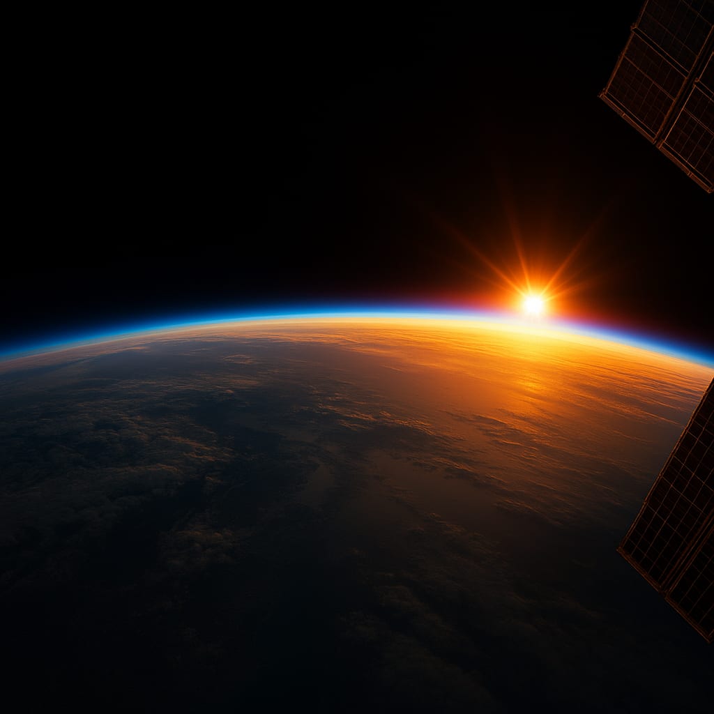 Imagine floating weightless, looking out a small window as the Sun explodes over the horizon sixteen times a day. Below you, thunderclouds flash like camera bulbs, and the aurora shimmers green and violet across the poles. The vastness of space outside the window makes you feel tiny — and yet, profoundly connected to everything below.