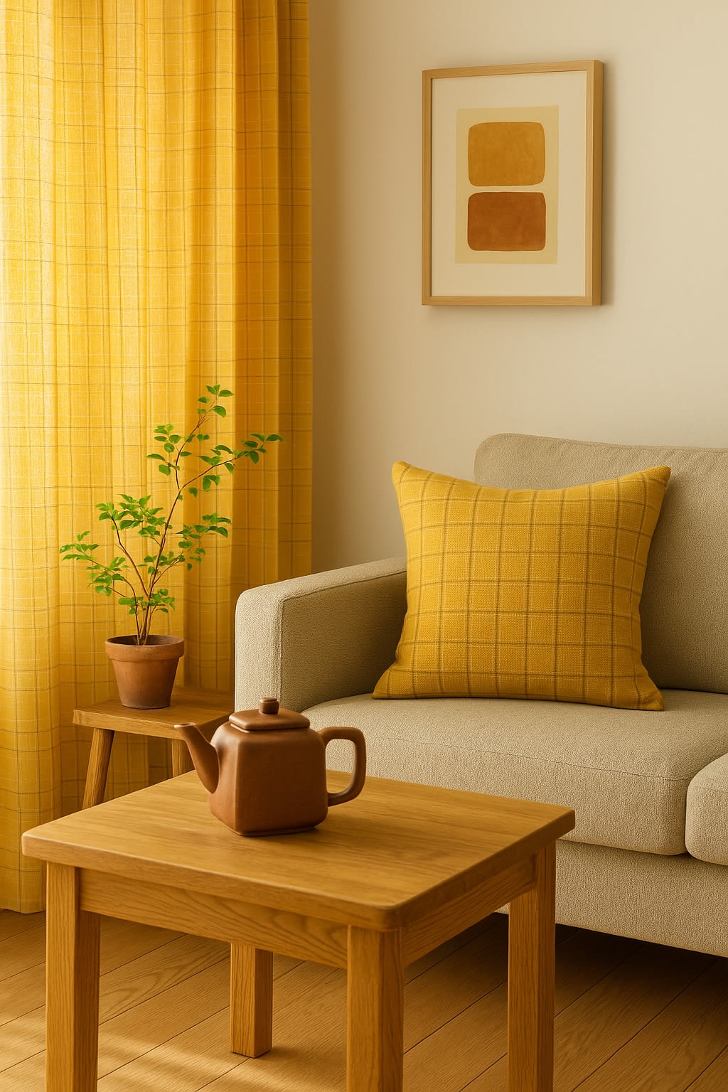 • Yellow plaid curtains