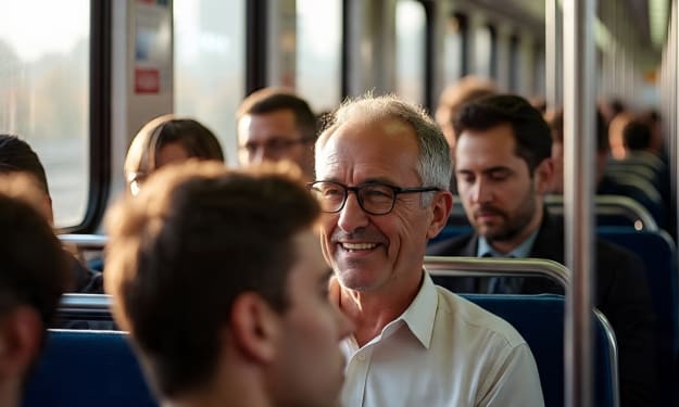The train was unusually crowded that Monday morning. Commuters packed into every carriage, holding on to metal poles, reading newspapers, or scrolling through their phones with blank, tired expressions. The air felt heavy, not just from the heat of so many bodies squeezed together, but from the invisible weight of people dragging themselves toward another long week.