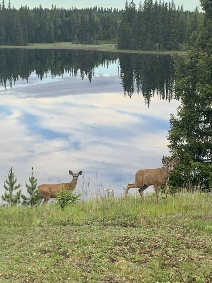 Gazing out my living room windows I am blown away by the lakes beauty. Just about everyday we are watching gorgeous moose. One brought her twins out the thickets to show off I’m sure.
