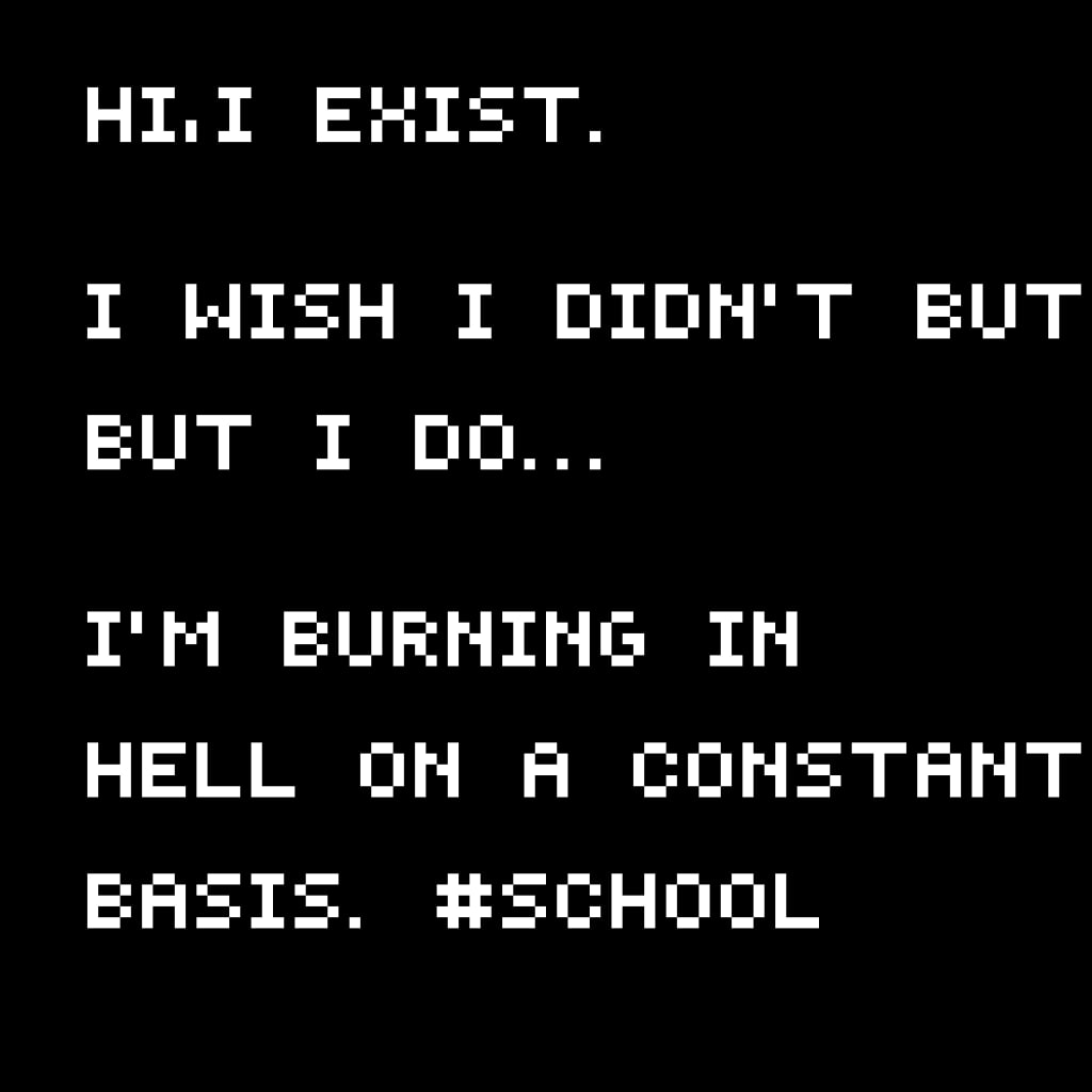 Hi. I'm a highschool student, currently a freshman. I'm only one year in and I already hate it. My hate for this emotionally traumatizing rollercoaster sparked the motivation to write this for anyone reading. If you're in school and you hate it, show this to your parents. You probably feel the same way and maybe you have the same experiences. Anyway, let's get into this.