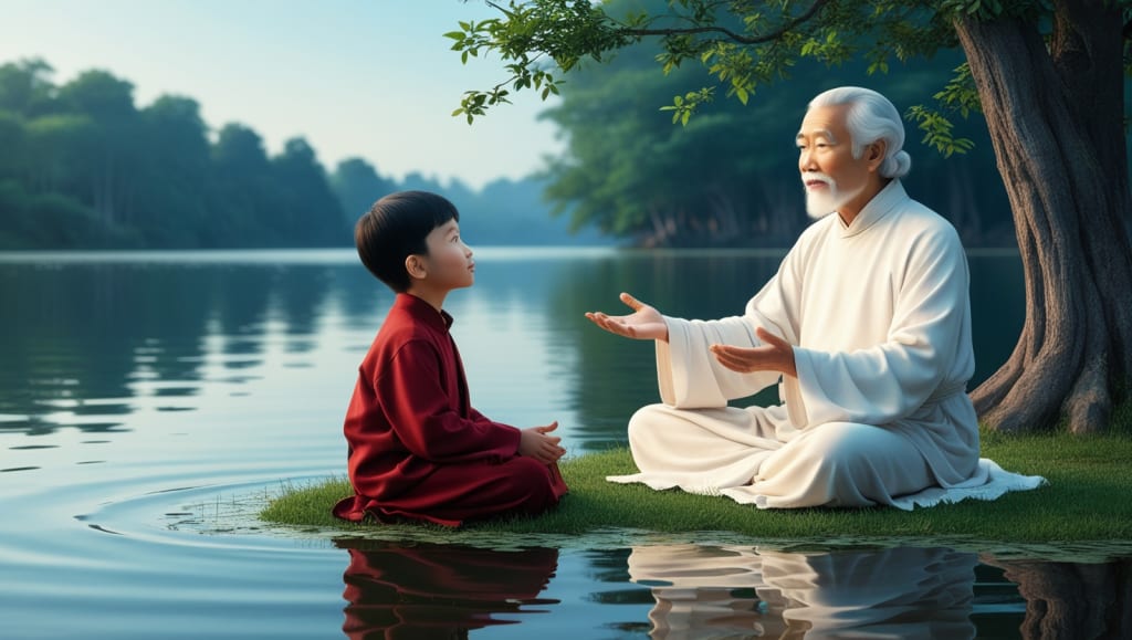 “Master, why is the lake so still?” he asked, his wide eyes filled with wonder.