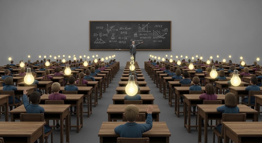 Watch a classroom in action and you will see the mechanism at work. The teacher asks a question. A dozen hands shoot up. One child is called upon and gives the answer the teacher expects. The class moves on. The children who were not called upon lower their hands, some disappointed, some relieved. The child who was considering a different answer, a more interesting answer, an answer that might have led somewhere unexpected, keeps silent because they have learned that divergence is not rewarded. The question that could have opened a door closes instead, and another small death of curiosity occurs.