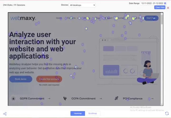 WebMaxy Analyzer is a user behavior analytics tool that can help you in understanding your users. Along with heatmaps, it has many features such as session recordings, surveys & polls, feedback, funnel view, form analytics, push notifications, A/B testing, advanced integrations, and much more. Schedule a demo with our experts for more information on WebMaxy Analyzer, or email us at [email protected].