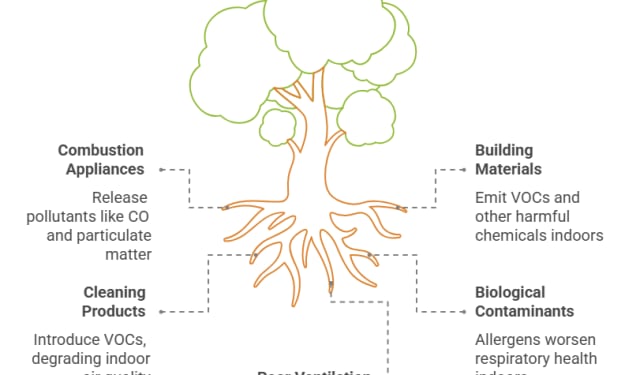 - Volatile Organic Compounds (VOCs) from paints, adhesives, and furniture
