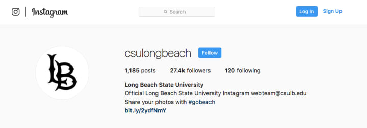 * When it comes to its social media presence—which is all important today, the school appears just as schizophrenic in its identity. Remember, CSULB is the official acronym for the university. However, go to its Instagram page, and what you see is—quite frankly—a jumbled mess, with its username being "csulongbeach," but the name being identified as "Long Beach State" and the account labelled as being the "Official Long Beach State University Instagram."
