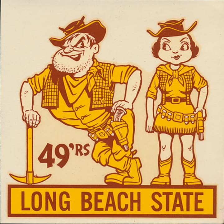 To its credit, the university has begun to use the 49ers name, logo, and vernacular to be associated not with the Gold Rush of 1849, but the school's founding in 1949. The legend of 1949 goes back not just to a date in time, but the fact that the university’s first president, Pete Peterson, frequently spoke of the Long Beach institution as having “struck the gold of education” (Source). While the university continues to use the 49er mascot and logo with its athletics, the meaning of it has indeed changed - at least the intended meaning of the symbol. And the university is very heavily invested in the 49er name—not just because of its origin story, but the very fact that guess what its bookstores on campus are named—"The 49er Shops at the Beach!"