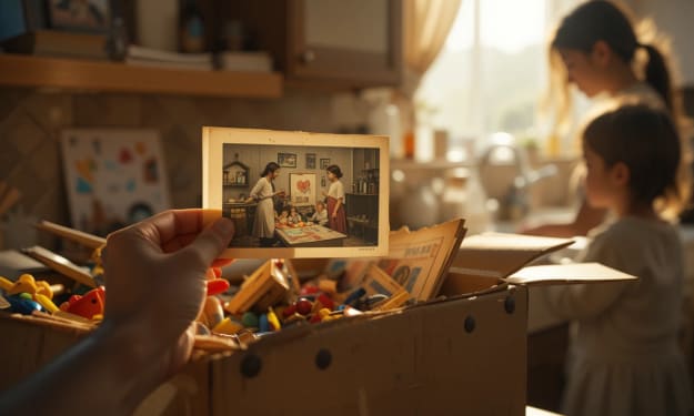 It was buried beneath a tangle of finger paintings. In it, I was seven years old, standing on the front porch of our old house, shirtless, chocolate smeared across my cheek. My mom was behind me, laughing, holding a dripping ice cream cone and looking at me like I was her entire world.