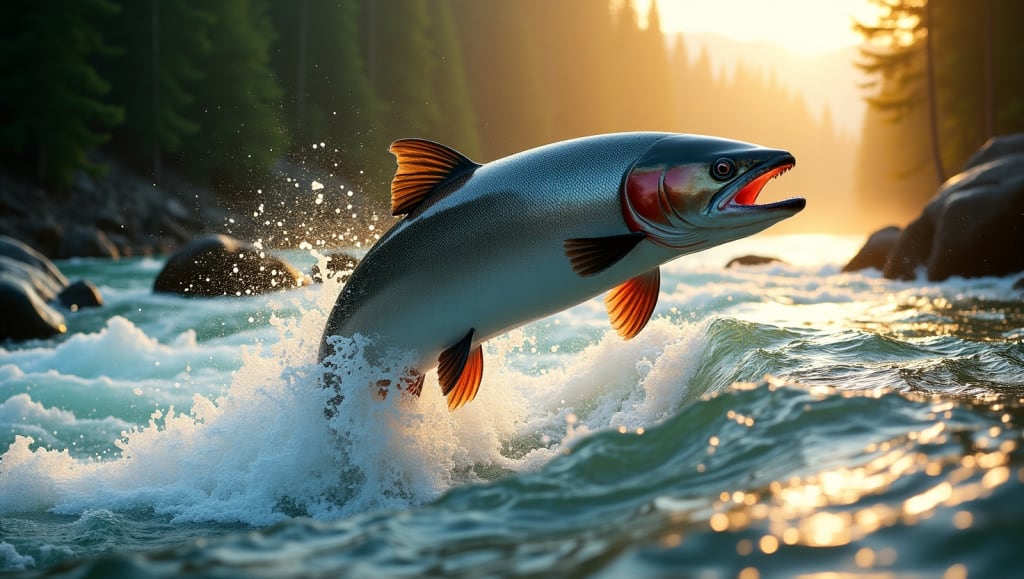 In a fast-flowing river nestled between towering mountains, there lived a young salmon named Finn. From the moment he hatched, Finn was different from his siblings. While the others were content swimming lazily in the calm pools, Finn was always darting against the current, testing his strength. His mother often told him stories of the great journey that all salmon must one day make—the journey upstream to their birthplace to spawn.