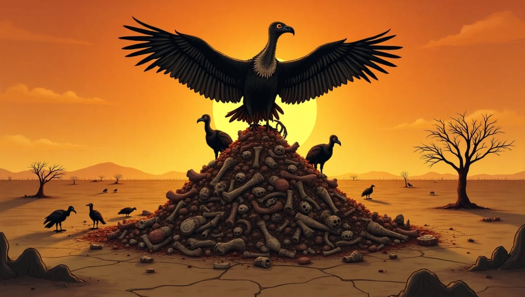 Deep in the heart of a vast, sun-scorched savanna, there lived a vulture named Vigo. Unlike other vultures, who were content with their share of food, Vigo was never satisfied. He was greedy, always wanting more, and never thought about saving for the future.