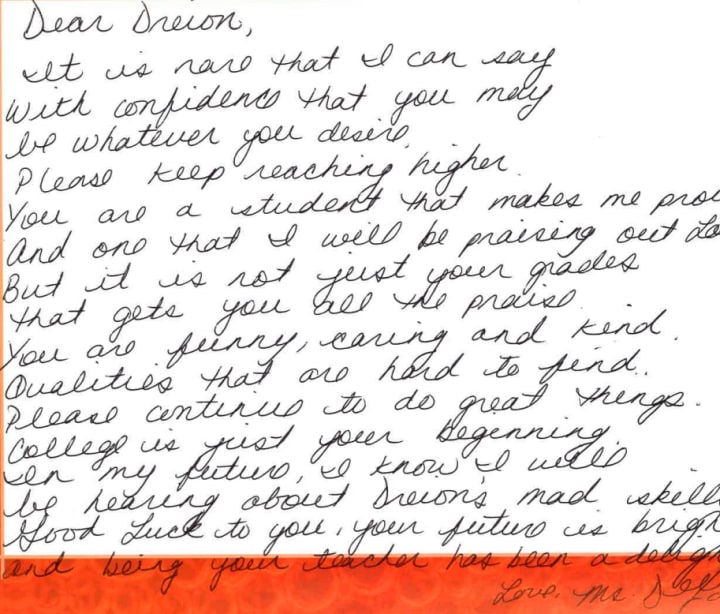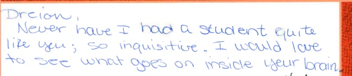 Throughout my life I have always been blessed with excellent teachers. Unfortunately for them I am and have always been a terrible student. I believe they’d think otherwise, and have written as much in my senior yearbook. You see, it is not that I was tardy, disruptive, or unstudious. It is that with such a myriad of great instructors I should now be in a skyline penthouse, or lounging on some foreign beach counting millions of dollars. I am instead a college dropout pursuing an unreasonable career in writing. This is not to be counted as a failure though. I was given the tools, guidance, and support from my educators to pursue whatever I found fulfilling. I would not have achieved any modicum of success in my writing or my personal life without them.