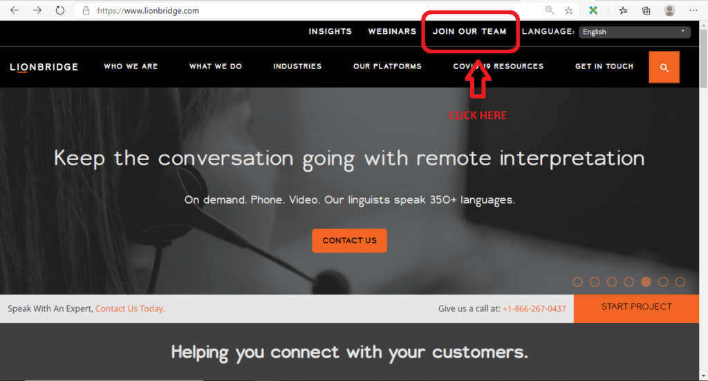 Lionbridge website is very user friendly and the whole process is very streamlined. Follow the below steps to proceed with the application process: