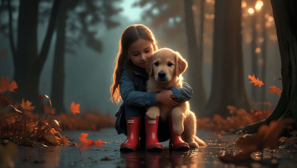 Slipping into her rain boots and grabbing her bright yellow coat, Emma dashed outside. The wind snatched at her hood, and the rain stung her cheeks, but she ran—straight toward the trembling little creature.