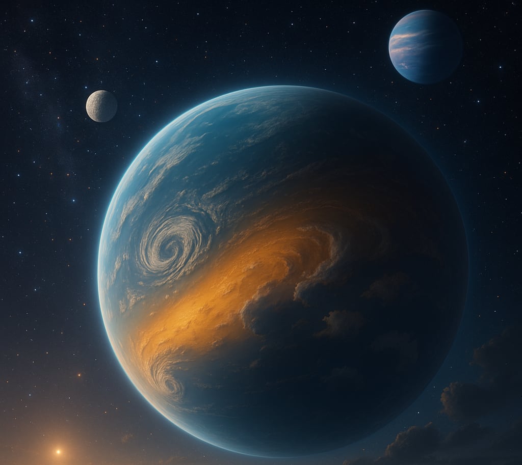 Between the rocky Super-Earths and the massive gas giants lies a mysterious middle ground—the Mini-Neptunes. These are planets with diameters between Earth and Neptune, wrapped in thick atmospheres of hydrogen and helium. Beneath their gaseous layers, they may hide icy or rocky cores, surrounded by steamy water vapor.
