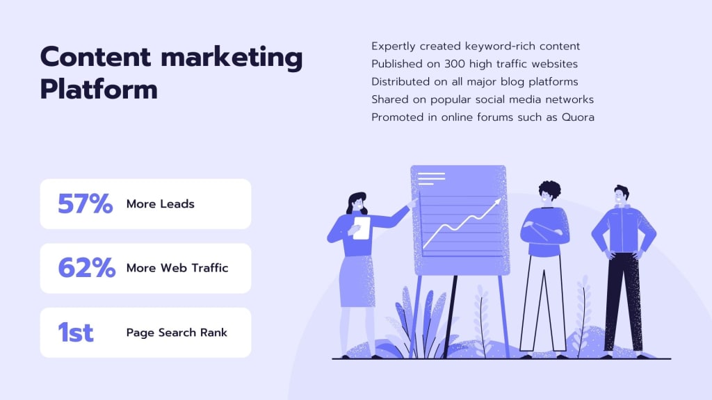 Statistics with percentages showing the benefits and advantages of content distribution: