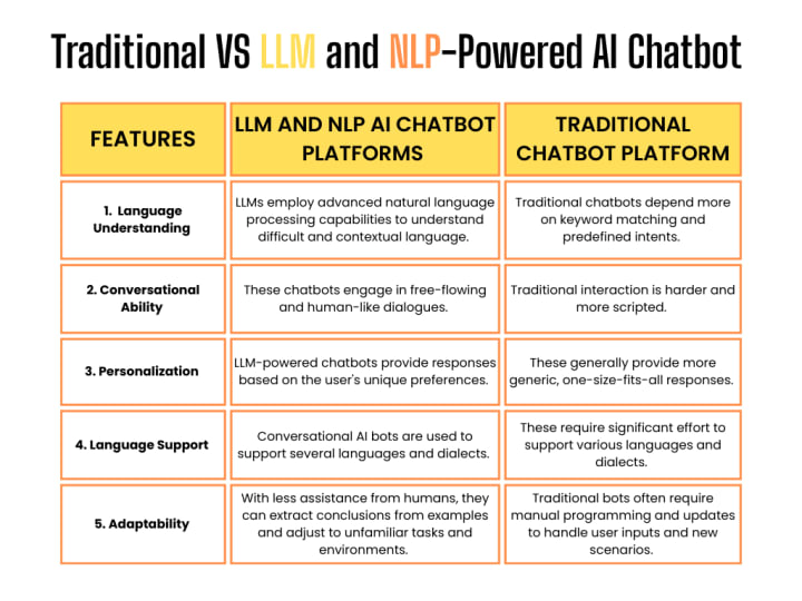Traditional Chatbots VS LLM and NLP-Powered AI Chatbot Platforms