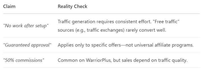 A: Not inherently—it provides a real affiliate link. But income claims are exaggerated.