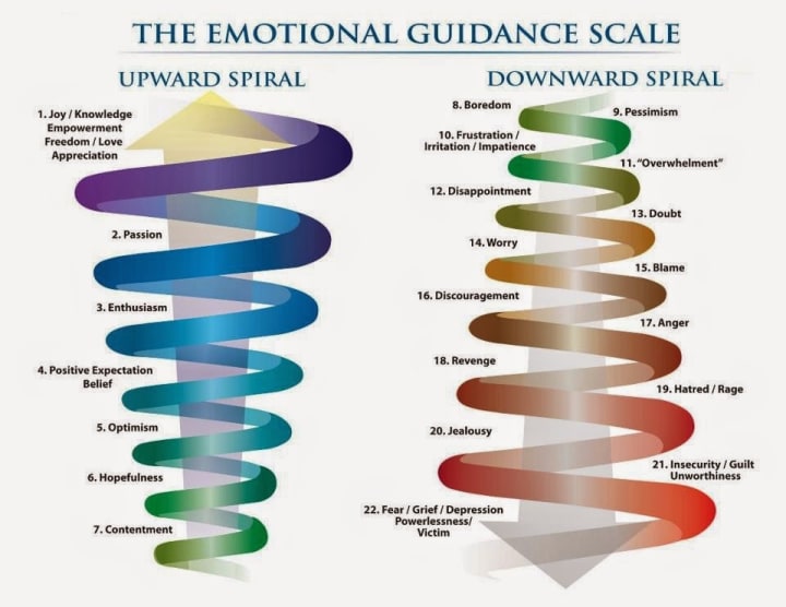 In order to achieve success, there must be consistent attempts to release & replace every thought that causes you to feel any emotion apart from joy (at the tippy top of the Emotional Scale). Familiarity with the Emotional Guidance Scale can help pinpoint where you are emotionally, where you prefer to be, and which emotions you can move upward through step-by-step in order to get there. We call this practice The Art of Pivoting.