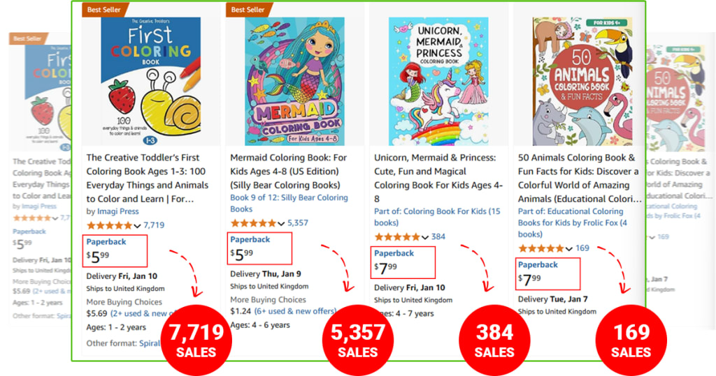 2. Lower Competition Goldmines: While everyone battles in "Children's Storybooks," specific niches like "Dinosaur Mazes for Ages 4-6" or "Ocean Life Coloring for Toddlers" often have far fewer competitors, making ranking much easier.