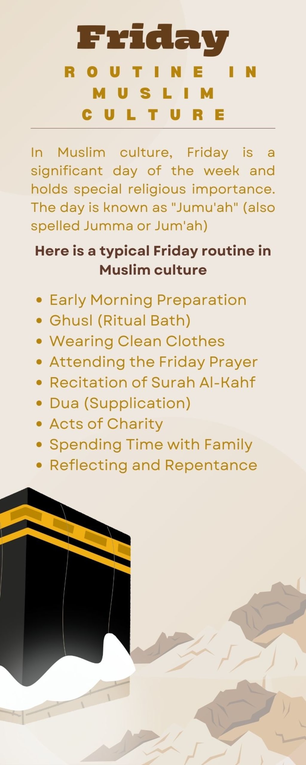 Jummah, or Friday, is considered a blessed day in Islam. It is a day when Muslims come together to offer the congregational Jummah prayers, seeking Allah's mercy, forgiveness, and blessings. The Prophet Muhammad (peace be upon him) emphasized the significance of Jummah, stating that it is the best day on which the sun rises. On this day, Muslims are encouraged to perform acts of worship, seek forgiveness, and engage in supplication.