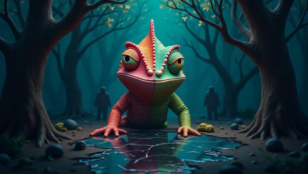 Deep in the heart of the lush green jungle, there lived a chameleon named Kizo. Unlike other chameleons who changed colors to blend in with their surroundings for safety, Kizo had a different habit—he changed his personality depending on who he was with.