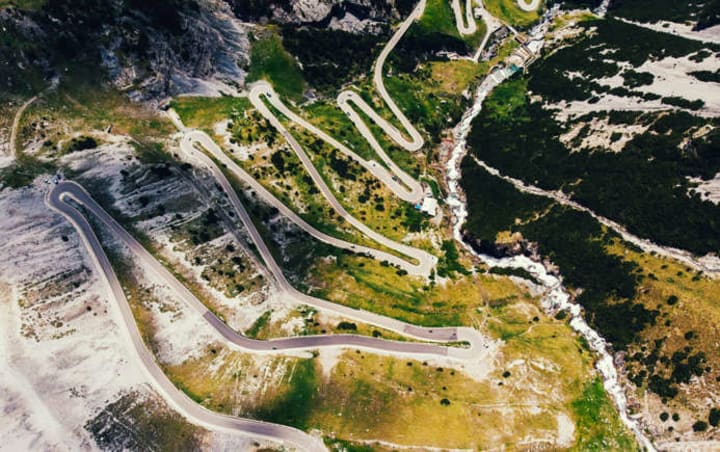 4. Romania's Transfăgărăşan Highway Top Gear called Romania's Transfăgărășan Highway "the best road in the world." It is a 56-mile (90-kilometer) engineering masterpiece. Cutting through the Carpathian Mountains, this road features sharp switchbacks, steep drops, and stunning alpine scenery. The highest point, Bâlea Lake, sits at 2,042 meters (6,699 ft) and is often covered in fog, adding to its mystical allure.