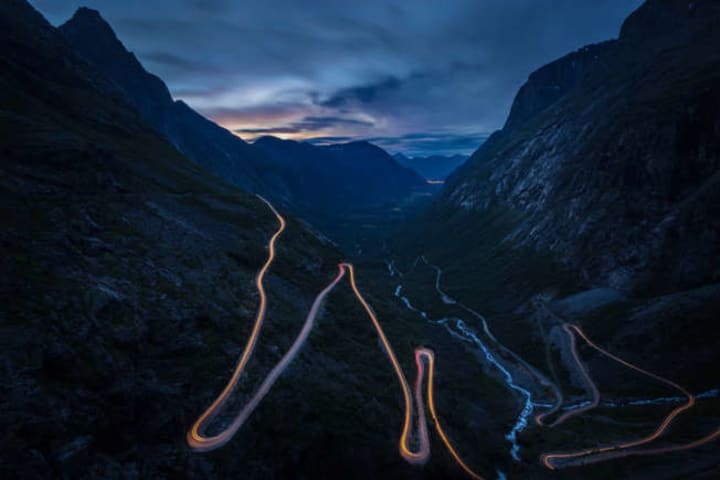 8. The Norwegian Trollstigen One of Europe's most thrilling mountain roads is Norway's Trollstigen, which translates to "Troll's Path." With 11 hairpin turns and a steep 9% gradient, this road climbs up to 858 meters (2,815 ft) above sea level. Waterfalls cascade down the cliffs, and viewing platforms like Trollstigen Viewpoint offer vertigo-inducing panoramas.