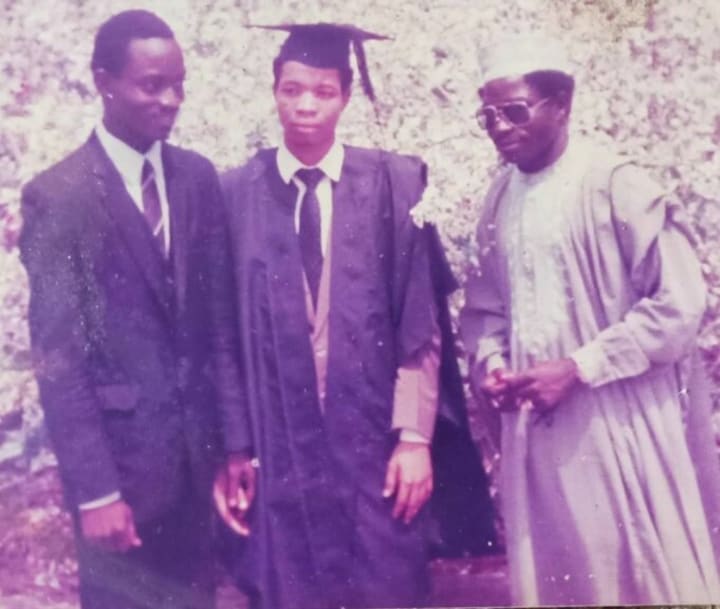 Comedian and popular actor Saka also posted a throwback picture from his graduation day. The actor revealed that on the day of the ceremony, he slept dejectedly in his hostel because he had nothing to wear for the ceremony. Luckily for him, his roommate entered the room, saw him, and offered him his suit. The picture was taken all the way back in 1986 at UNIFE now OAU.