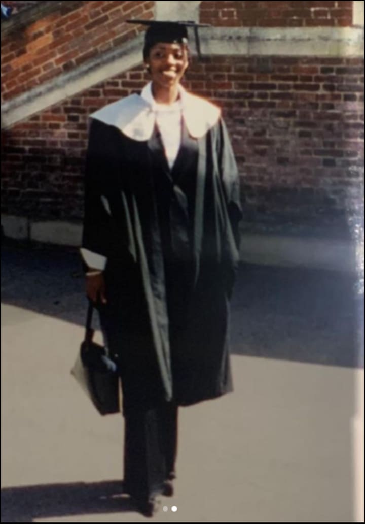 Beloved Nollywood actress Shan George kicks off our list. Shan shared a throwback photo of herself during convocation day at the University of Lagos where she studied Mass Communication many years ago. Shan looked good then and still looks good today!
